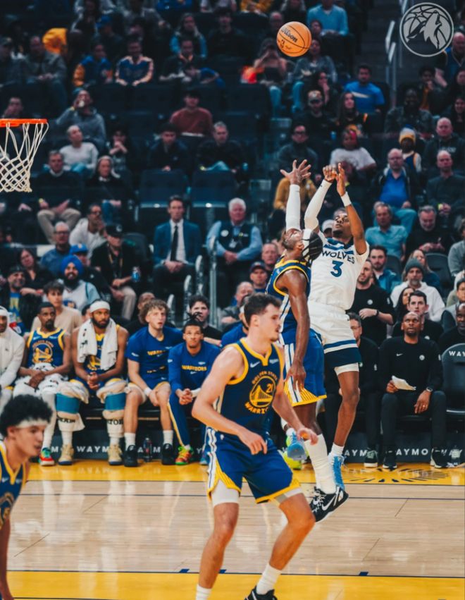 首发阵容方面,森林狼队这边,爱德华兹缺战,教练排出的首发五人组为:海兰德、迪温琴佐、麦克丹尼尔斯、兰德尔、戈贝尔;勇士队这边,库里伤愈复出,追梦格林和霍福德缺阵,首发阵容则为:斯潘塞、库里、吉米-巴特勒 、希尔德、昆滕-波斯特。