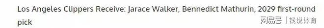 露天看台随之曝出一笔具体交易方案,引发外界广泛热议:步行者送出贾拉斯·沃克、本尼迪克特·马图林以及2029年首轮选秀权,从快船得到祖巴茨与德里克·琼斯二世。
