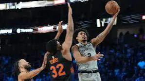 卡斯尔开场5分钟4助攻,瓦塞尔早早启动,马刺领先。但第一节文班亚马替补出场,却让尼克斯追上:季后赛尺度判罚,唐斯上了尺度,文班立刻显瘦,第一节4投1中。