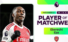 官方:北伦敦德比戴帽的埃泽当选英超第12轮最佳球员